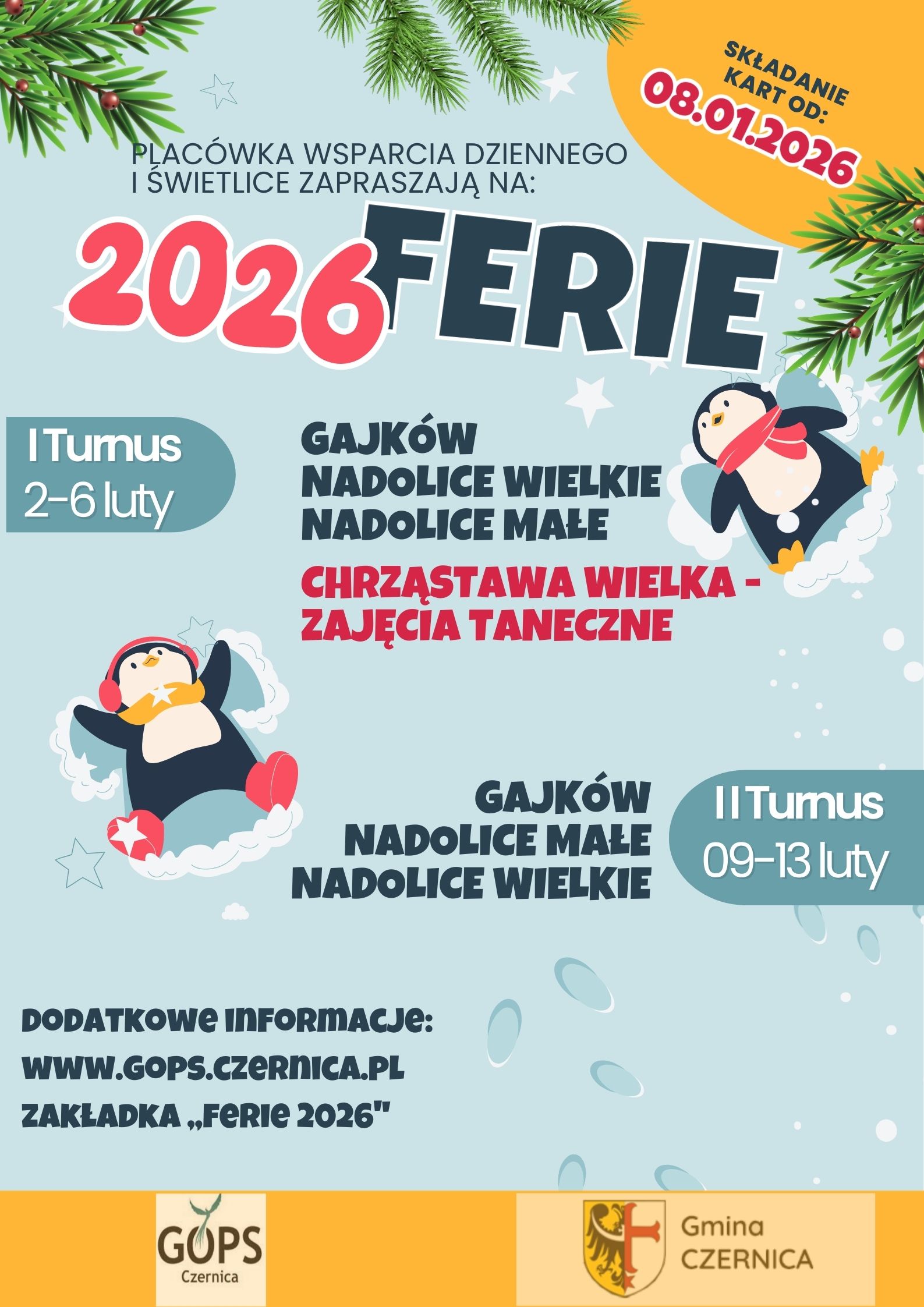 Zajęcia podczas ferii 2026 są finansowane z gminnego programu przeciwdziałania Alkoholizmowii (koszty organizacyjne - gadżety, wynagrodzenia, przejazdy, ubezpieczenie).