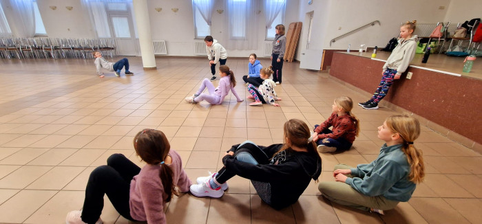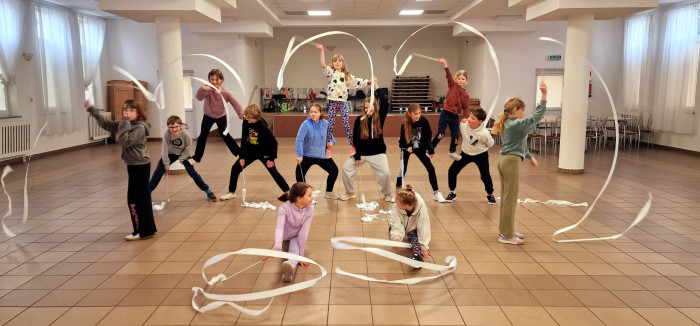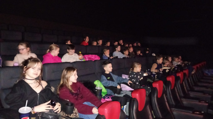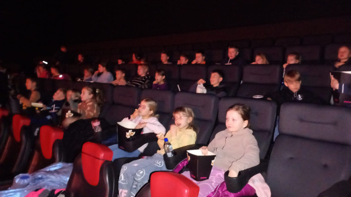 Dzisiaj dzieci miały okazję poszerzyć grono znajomych, gdyż wyruszyli wspólnie autokarem do Multikina. Nie mogło zabraknąć całej otoczki kinowej - cieplutkiego popcornu i pysznych napojów:) Seans przeniósł małych kinomanów do świata egzotycznych przygód oraz oceanicznych wypraw. Piękna opowieść o perypetiach małego chłopca oraz jego przyjaciela delfinka w niezwykle przystępny sposób poruszyła szalenie ważne tematy: przyjaźni, znaczenia własnych korzeni i pochodzenia oraz wytrwałego dążenia do celu. Natomiast nasi młodzi tancerze z Chrząstawy Wielkiej poczynili pierwsze kroki w kierunku niezwykle skomplikowanego układu - wzbogaconego o wymagające rekwizyty, jakimi są szarfy.